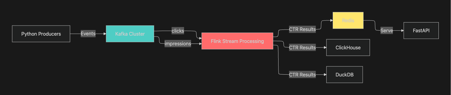 싱크는 Redis, ClickHouse, DuckDB의 세 가지로 분리하는 방식으로 전략을 설정하였습니더.